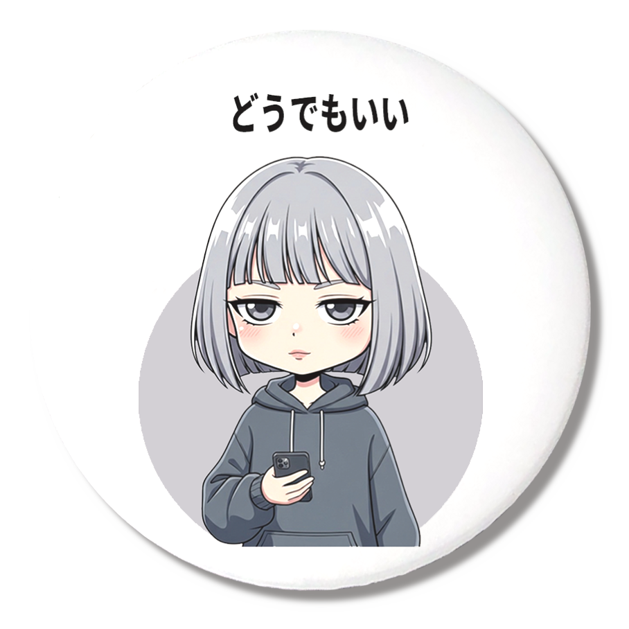銀髪ボブちゃん缶バッジ「どうでもいい」毒舌シリーズ