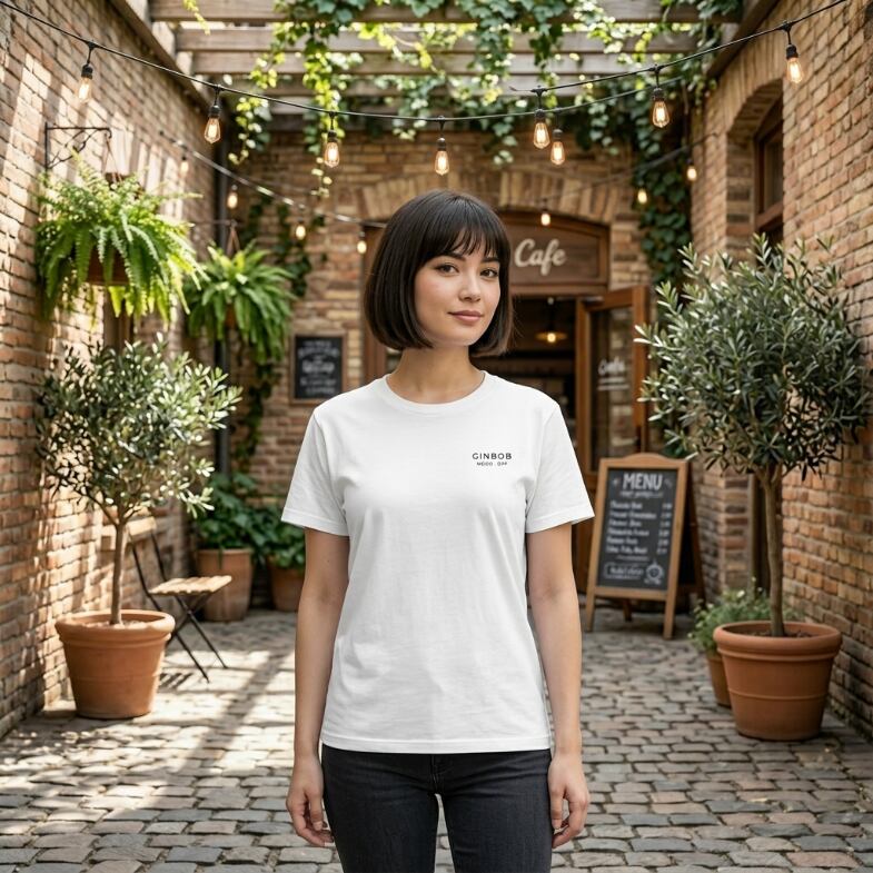 左胸にはミニマルなブランドロゴ